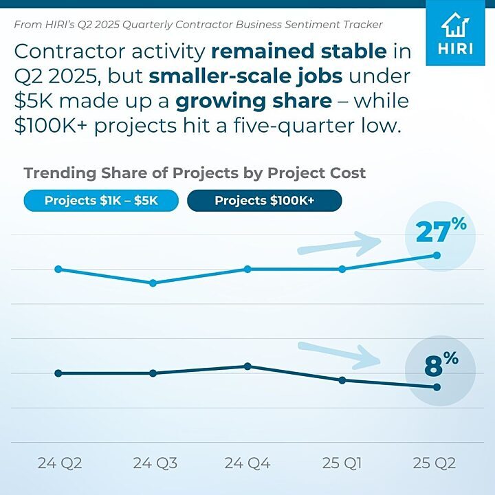 Projects over $100K dropped to a five-quarter low, while $1K–$5K jobs gained ground