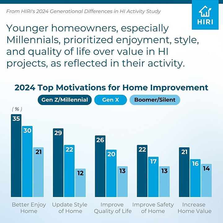 35% of Millennials and Gen Z Prioritize Projects to Enjoy Their Home Compared to Only 21% of Boomers