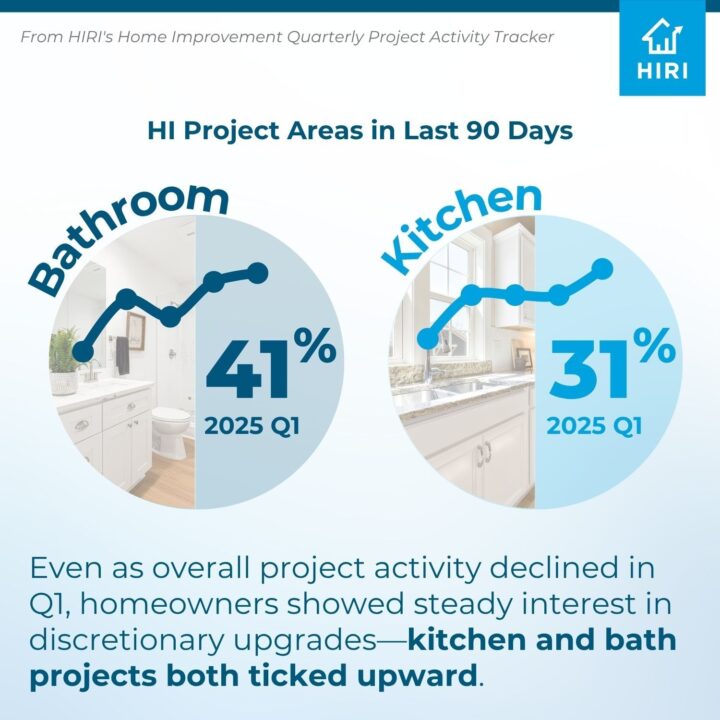 Kitchen and bath home improvement projects both increased in Q1 2025 despite broader slowdown in home improvements